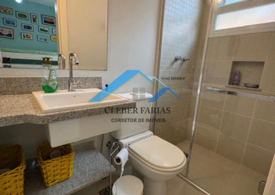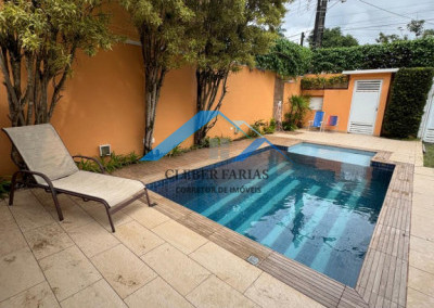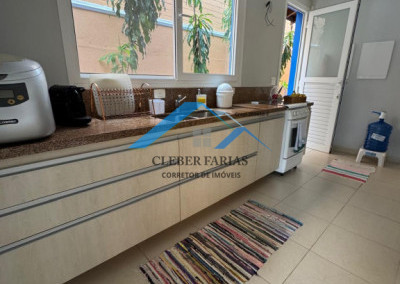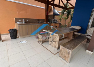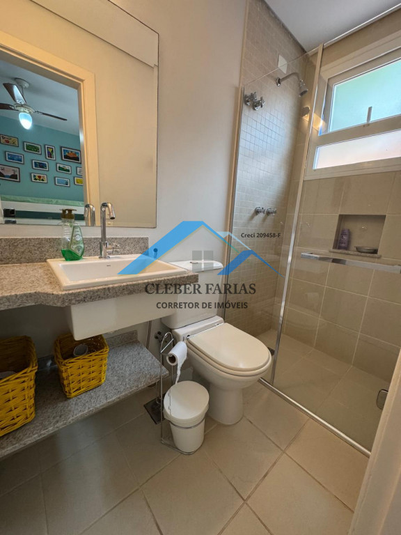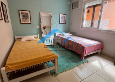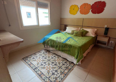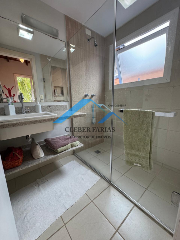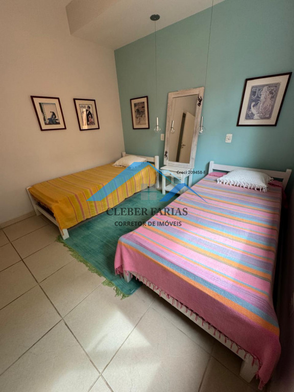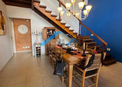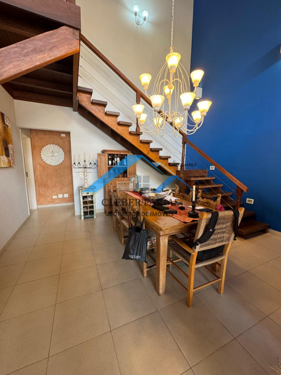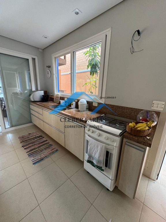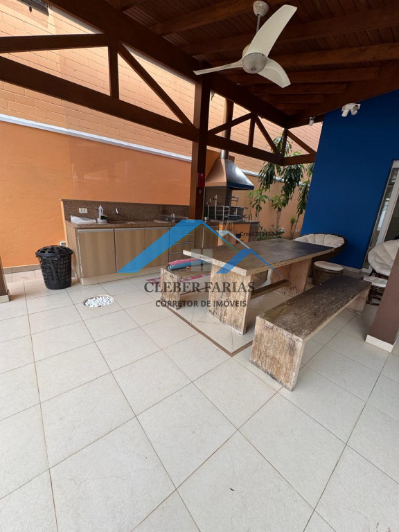 Casa possui três quartos, sendo 3 suítes, 4 banheiros e 1 lavabo, 2 vagas de carros, sala, cozinha, mezanino, área de churrasqueira, piscina, lavanderia e armário de apoio para guarda utensílios de praia .
