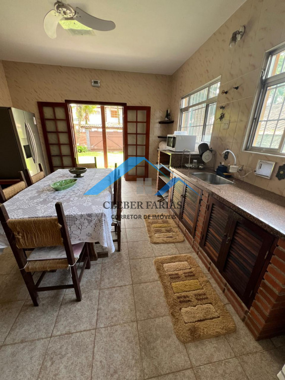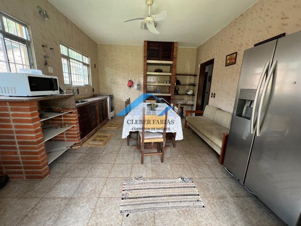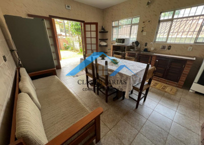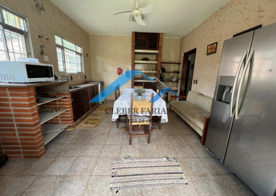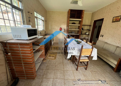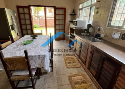 Casa possui três dormitórios, sendo duas suítes, banheiro social, sala de jantar, cozinha, e edícula.